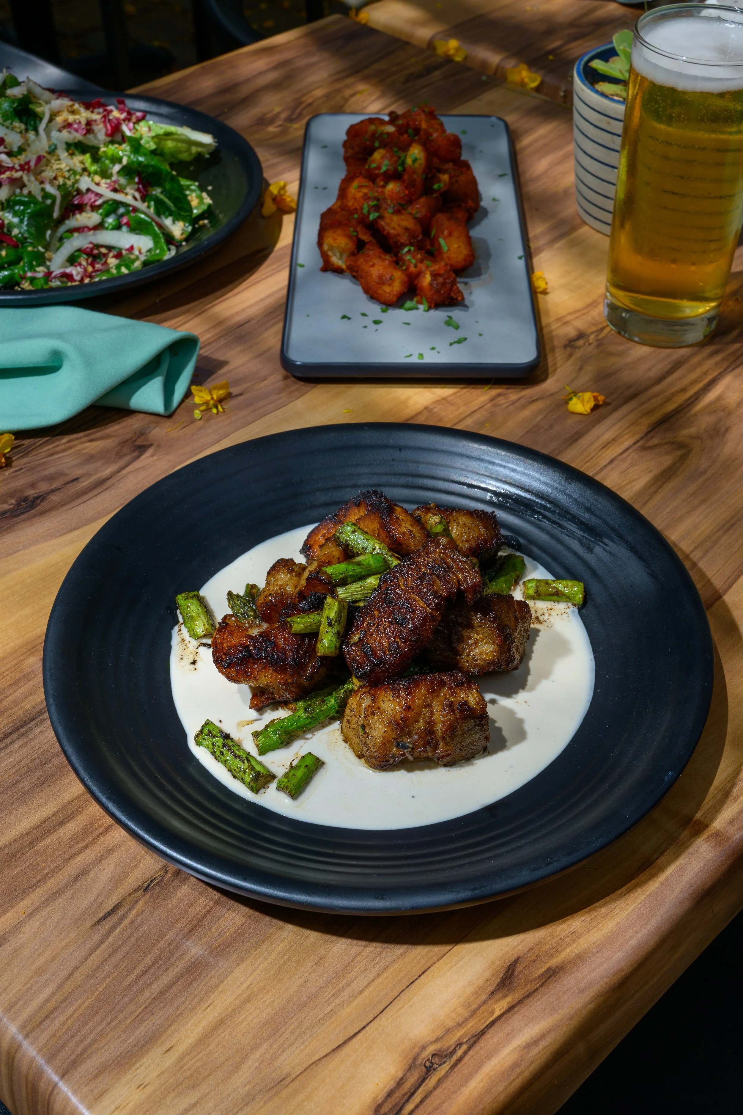 Order Online Our menu. FOOD CANS & WINE COCKTAILS HAPPY HOUR FOOD $8 frites rosemary dusted shoestring fries, harissa ketchup, olive aioli $8 $6 marinated olives warm house-marinated olives $6 $16 seasonal cheese plate 3 rotating cheeses, pickled veggies, marinated artichoke hearts, crostini, and more $16 $10 patatas bravas crispy fried potatoes tossed with salsa brava $10 $12 grilled asparagus over whipped goat cheese with tomato confit $12 $19 kale salad citrus dill greek yogurt dressing, quinoa, cucumber, pickled red onion $19 $18 the chopped greek cucumber, tomato, olive, red onion, feta, garbanzo beans, fresh herbs, cauliflower, olive oil vinaigrette $18 $20 little gem salad little gem lettuce, radicchio, pickled fennel, herbed lemon dressing, toasted anchovy breadcrumbs $20 $19 market salad chef’s salad special $19 $10 / $13 warm cauliflower vichyssoise (vee-she-swaz) Julia Child’s favorite soup! cauliflower and potato soup with leek and dill $10 / $13 $16 wings zatar dry rub, tzatziki $16 $15 cavatappi and cheese creamy garlic parmesan sauce $15 $18 garlic shrimp sautéed marinated shrimp with garlic and herbs $18 $20 mussels spicy chorizo broth with harissa, fennel and grilled focaccia $20 $19 pork belly crispy pan fried pork belly with chopped asparagus, over caramelized shallot tahini $19 $22 every menu needs a burger 8oz burger patty, swiss cheese, tomato and carmelized onion compote, red onion, dijon aioli, little gem lettuce, onion brioche (g/f bun available) $22 $30 salmon house-made herby creme fraiche, salted cucumbers, crispy potatoes, dill and lemon $30 $18 skillet fried gnocchi sage, mushrooms, shallots, lemon juice, butter and parmesan $18 $18 marry me chickpeas chickpeas, tomato confit, coconut milk, artichoke hearts, quinoa $18 $32 steak frites marinated sirloin, rosemary fries $32 Kids Stuff: $10 noodles and cheesy sauce $10 $12 kids burger w/ fries $12 $13 grilled cheese $13 Desserts: $12 flourless chocolate cake gluten free and oh-so-yummy $12 $14 bread pudding made with house-made caramel sauce and pretzel buns $14 $8 scoop o’ ice cream rotating flavors $8 CANS & WINE Cans: Shindig Cider Transmission Highway Mexican Style Lager Casa Agria Hazy IPA - ask your server! Central Coast Lucky Day West Coast IPA Rotating N/A Beer Wine: $14 Fableist Albarino, Central Coast, 2023 $14 $13 Lombardini Lambrusco, Emilia Romanga, 2023 $13 $15 Fableist Chillable Red Blend, Central Coast, 2023 $15 $17 Tolosa Pinot Noir, Central Coast, 2023 $17 $15 Corkage Bring your own bottle and support our local wineries all within walking distance: Ojai Vineyard, Majestic Oak Winery, Ferios Ferio, Casa Barranca $15 COCKTAILS $16 carnelian’s curse nikka coffee gin, fig honey syrup, lemon $16 $16 tiki tourmaline rooster rojo pineapple tequila, triple sec, orgeat, lime, bitters $16 $17 tigers eye-tini plantaray coconut rum, luxardo coffee liqueur, espresso $17 $16 oaxacan jade rosaluna mezcal, ancho reyes verde, triple sec, lime $16 $17 east end emerald altos tequila, rosa luna mezcal, cucumber, mint, lime $17 $15 garnet spritz luxardo amaro, grapefruit, lambrusco, soda water $15 $18 peridot preference choice of spirit, dolin blanco, olive $18 $17 hold my peach, aventurine altos tequila, ramazzotti aperitivo rosato, lemon, basil, agave $17 HAPPY HOUR all day monday - thursday 3-6 pm fri, 6-8pm sunday $10 Cocktails $10 classic margarita house tequila, triple sec, agave, lime mule house vodka, bitters, ginger beer, lime dirty shirley house vodka, sprite, grenadine whiskey sour house whiskey, simple syrup, lemon $1 off all CANS and WINE by the glass $1 off all CANS and WINE by the glass $6 frites rosemary dusted shoestring fries, harissa ketchup, olive aioli $6 $5 marinated olives warm house-marinated olives $5 $7 patatas bravas crispy fried potatoes tossed with salsa brava $7 $17 every menu needs a burger burger patty, swiss cheese, tomato and caramelized onion compote, red onion, dijon aioli, little gem lettuce, onion brioche $17 burger patty, swiss cheese, tomato and caramelized onion compote, red onion, dijon aioli, little gem lettuce, onion brioche